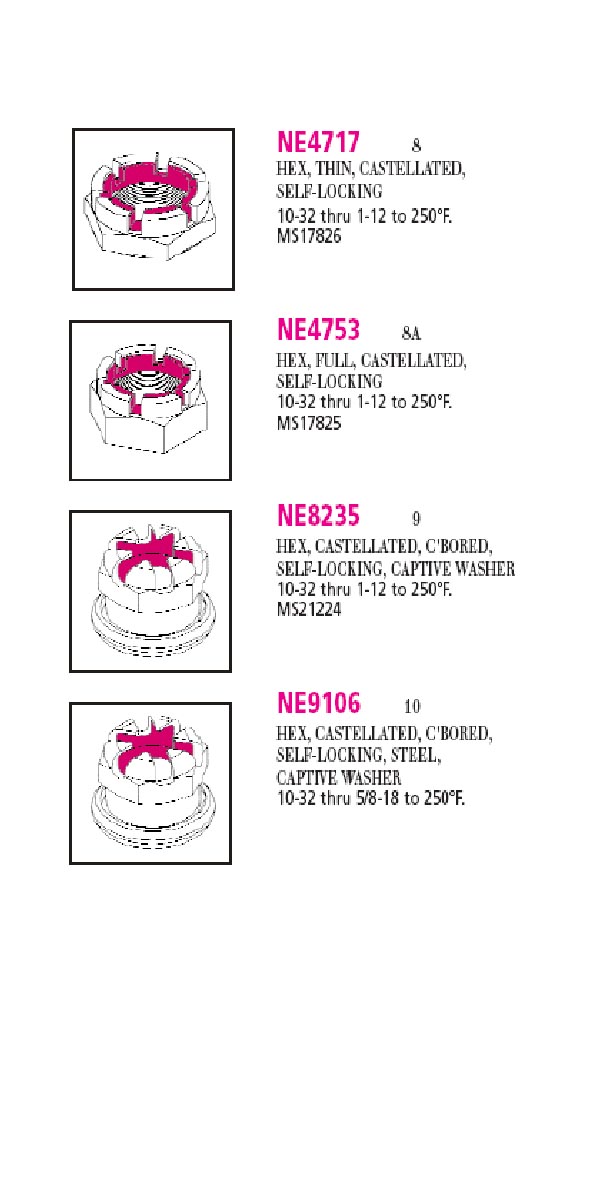 locknuts with plastic/nylon inserts. The max temperature range is listed