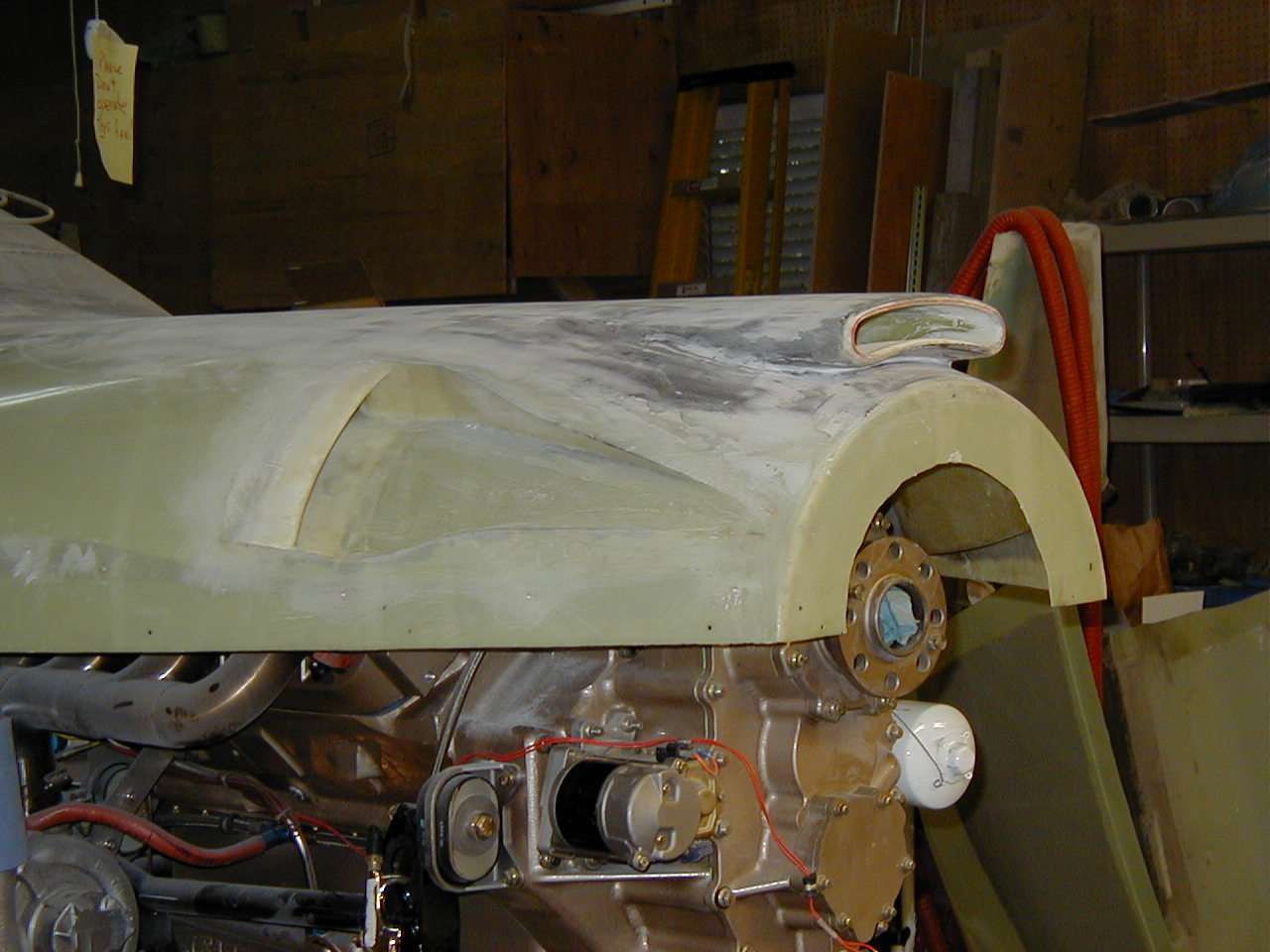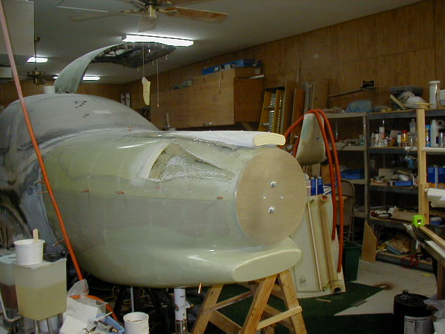 [You can use just plain ol' styrofoam, available at the local building supply place in the insulation area. It's a bit messier than the urethane foam, but a fraction of the price... and for a couple little cowl bumps it's just the ticket. Get your basic shape in the foam, put a layer of bondo over the top to fine tune them, then layup a couple layers of bi-directional glass cloth for your structure. Once everything is cured up, remove the foam, sand out the excess bondo, bondo the irregularities on the exterior, sand & finish. I'm attaching a couple pictures of a scoop that I made for that Eagle540 installation I've been working on using styrofoam... proof that it works just fine. I skinned this scoop (it's for our 3rd intercooler) with carbon fiber, but that would be way overkill for a little bump. This scoop was much more complex than a simple cowl bump, but emminently doable. I hope this helps. <Marv> ]