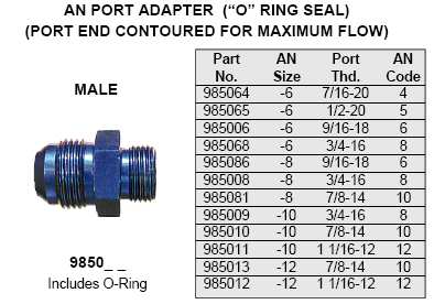 flare to AN-6 'O' ring adaptor is called out. But the description for the