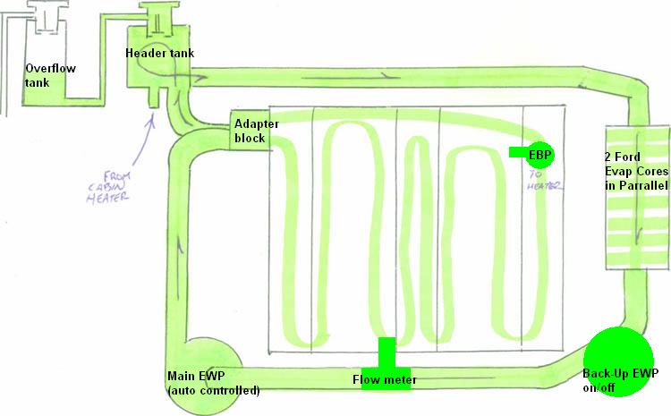 hose to a 1 1/4" automotive rad hose. The other is a simple hand drawn flow