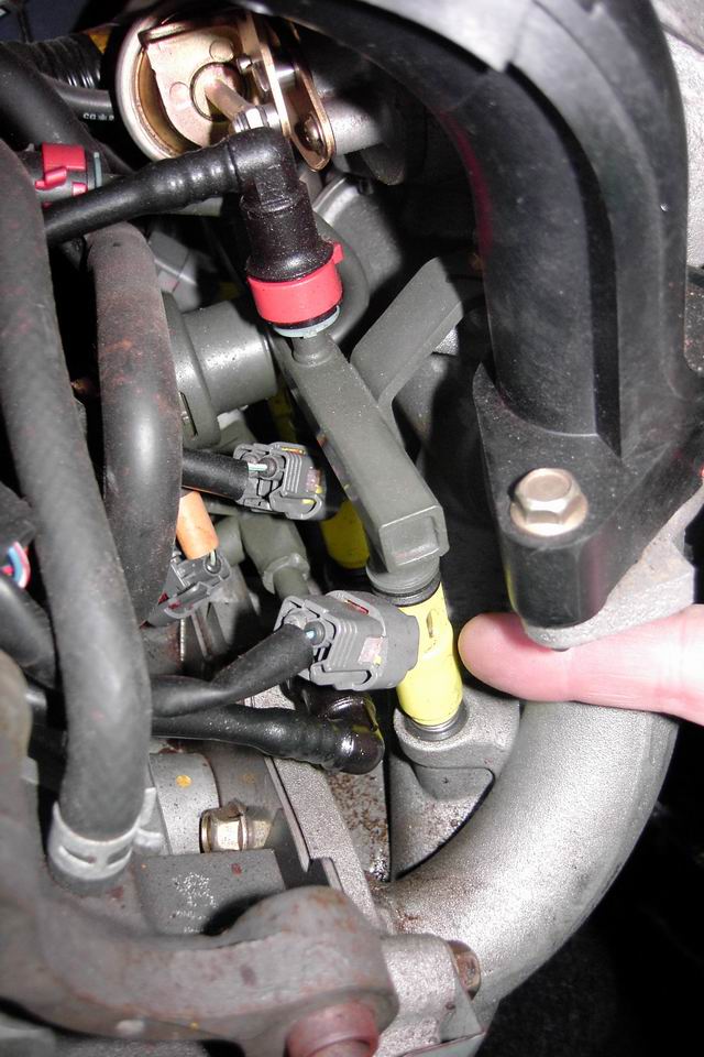 The fuel rail and injectors are ultra sexy on this engine. They look very lightweight. I think I would be wise to keep the stock injectors and fuel rails. They are somewhat buried under the intake manifold, but attached is a picture.