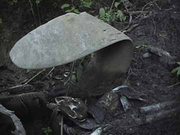 possible evidence of an engine below it in the mud, such as a scat tube and