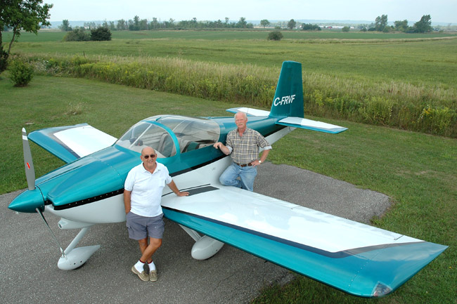 Some of you folks on the fly rotary list a bit longer may recall Jim Mosur and Neil K.  Jim had a rotary in an RV-6 and Neil in a Lancair 235.  Well, both are currently without a rotary powered aircraft (for shame) but, recently completed their joint project the Rv-7 in the photos.