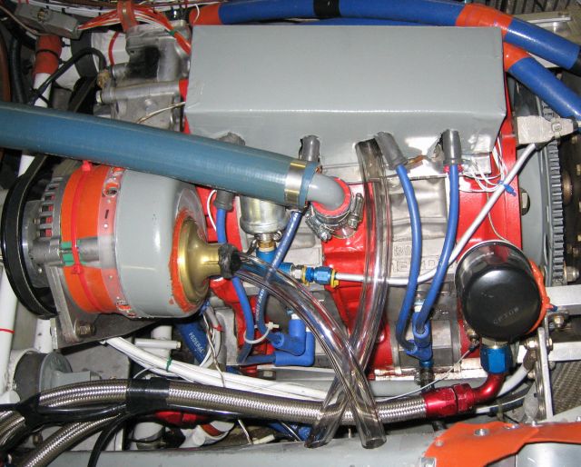 photo shows the solution (hopefully). The alternator plenum is made from a
