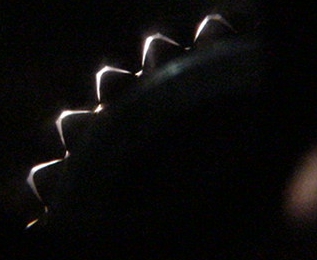 inspection (backlit spline fit with a 10x eye loop), it looked like the spline
