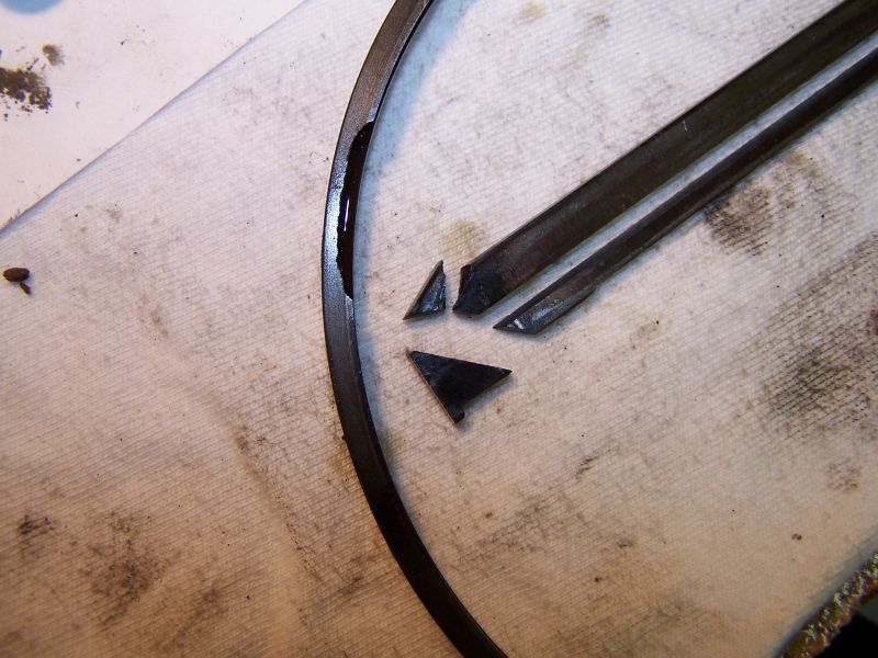 Just tore it down today and attached is a photo of the broken apex seal. Also found a chip from the outer (compression side) oil seal on that rotor. Not shown are the SIX missing (melted??) rubber plugs from the corner seals, and two corner seal wire springs that are completely missing! The ones remaining are completely flat and looked like they were disintegrating from heat.