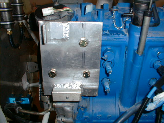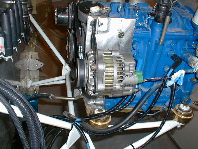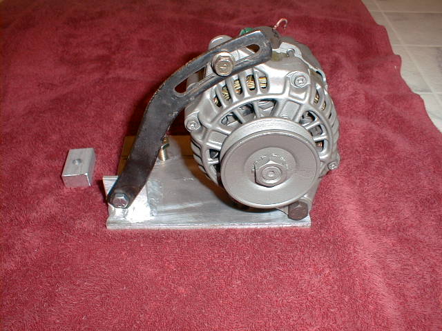 snugly fits between the alternator ears. I had a 90 degree aluminum angle welded