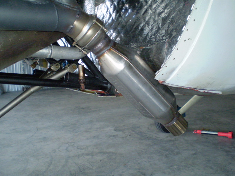 I installed the HP-2 today on my 20B and was able to do a run-up. Bobby Hughes and I both agree that the exhaust tone is much, much mellower with a deeper tone. My Lighspeed ANR headset had no problem cancelling out this low-frequency exhaust tone. While the overall sound level was still pretty significant, the exhaust tone was much more pleasant to the ears. The ear-piercing, glass shattering, nails-on-the-chalkboard, make-you-bleed-from-the-ears, exhaust tone is totally tamed. The 3-blade M/T prop is the primary noisemaker now. The test took place between two rows of hangars, so I feel that DB readings are not very realistic. I'll take those again out on the ramp and post the numbers. If the HP-2 holds up to the pounding of the rotary's exhaust, I'll be a very happy camper.