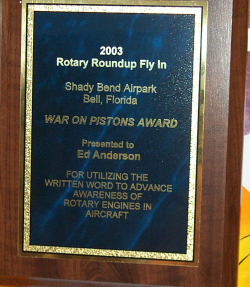 Here is a picture of Ed's well deserved plaque from Shady Bend.