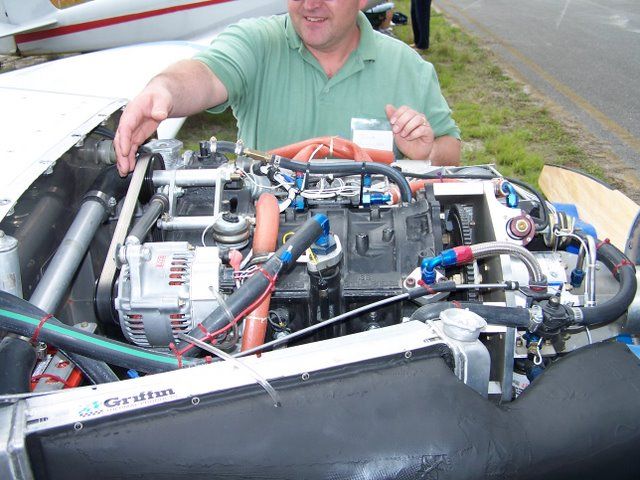 The last time I saw it was unpainted at Tracy's in '07 but If my memory serves (and it doesn't as well as it used to!!!!) he had a NACA scoop on the pilot's side of his cowling like the one in this picture.