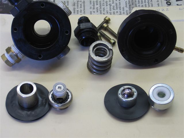 diaphragm. This had resulted in a decrease in hysteresis from over 15 psi to about 5 psi. When installed on my fuel injector test bench, the old parts as shown