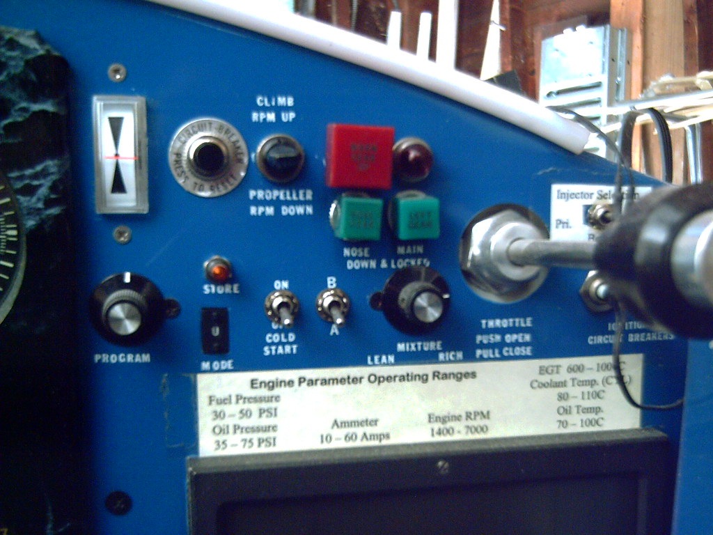 I've included a photo that shows the engine/prop management section of my instrument panel. The prop section is in the upper left corner. The meter is on the left, the circuit breaker is in the center and the toggle switch is to the right of the circuit breaker.