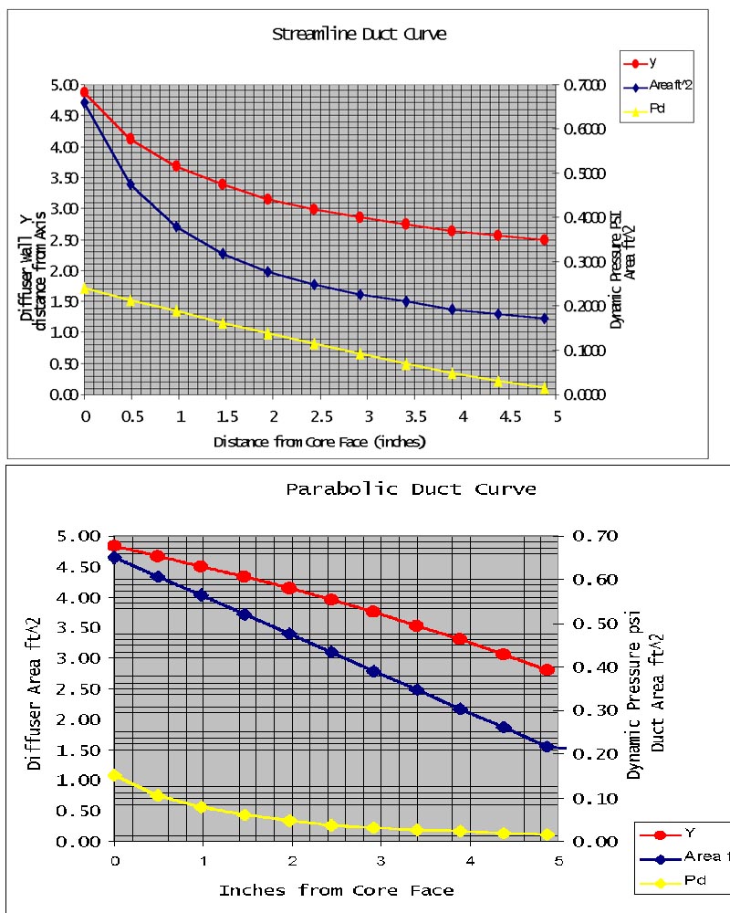 Y axis. The left Y axis shows the duct wall distance from the duct axis at