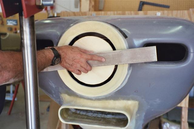 Here are some photos of my approach using Pour-foam. It sands easily and then a layer of fiberglass makes it strong.