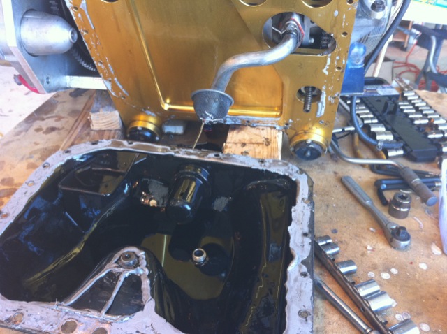| I removed the engine on Friday. Dropped the pan today, Sunday. The first thing I saw was the spring from the pressure control valve dangling from the bottom of the engine/engine mount. Then, as now expected, the pressure control valve sitting in the pan. Well, to quote Mythbuster's "There's your problem.". So, now to re-read the install to see what I missed and perhaps add some Lock Tight.