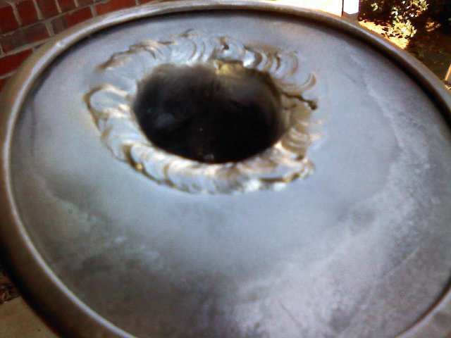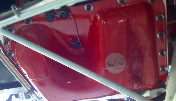 In the last picture, I reduced the saturation on a small circle near the base and rear of the oil pan. If you look closely, it almost looks like one of the magnets that you can pull from the armature of a hard disk's read/write head. It is some steel fillings that stuck to the outside of the pan, after I put a maget from the armature of a hard disk's read/write head. Those are some really strong magnets that I've got laying all over the place. BTW, they are REALLY useful when trying to butt weld sheet metal. One on each side, and your metal stays right where you put it. Be careful when working with these magnets. They'll snatch a blood blister on the end of a finger without thinking about it.