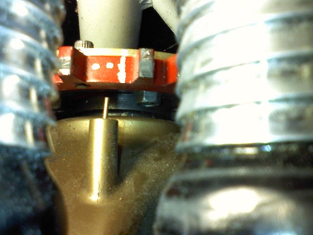I connected a timing light, and spotted the marks show while cranking the engine. This isn't a picture from the timing light strobe. I positioned it manually and took the picture with my phone. When cranking, the pointer split the difference between the line and the first dot almost perfectly. If I have this straight, the spark is lighting about 5* before the rotor flattens out against the spark plugs, which is top dead center, is translated as 5* BTDC. My goal was to move the VR pickup to where I would get 25* of timing advance that Lynn recommends without any input from the ECU.
