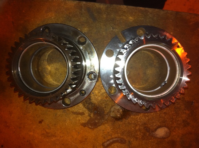 New RX8 stationary gear/bearing next to used RX7 stationary gear/bearing