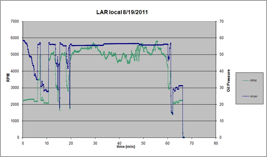 replaced with the recommended spacer. The oil pressure is taken after the cooler and filter. As shown in the attached plot, the oil pressure is regulated at about 56 psi by the unmodified stock oil pressure regulator.