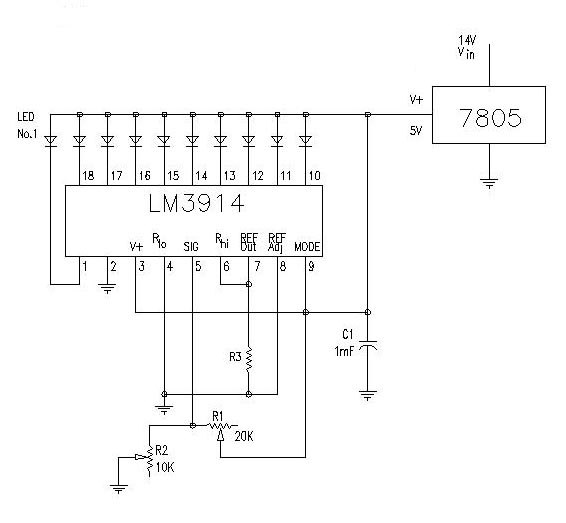 Cool. Here's a little schematic you can use to drive your ladder display. I've built both versions, they work great. This one is for a 10-LED ladder, the one I'll send with the next post is for 20 lites and will include the circuit notes. Enjoy.