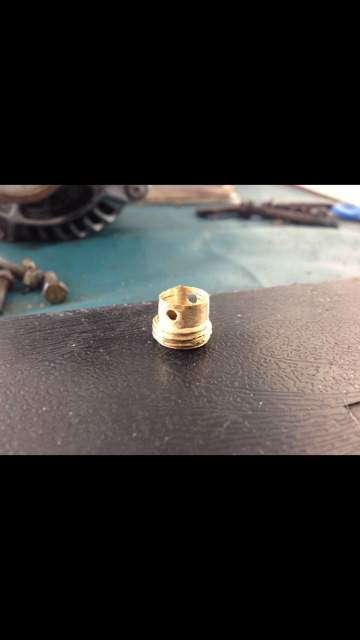 This is the modifiers brass fitting. I was still cleaning it up at this point. The holes are to assist with a tight install. I ground it down once tight as it didn't seem to beef very deep to hold the o-ring.