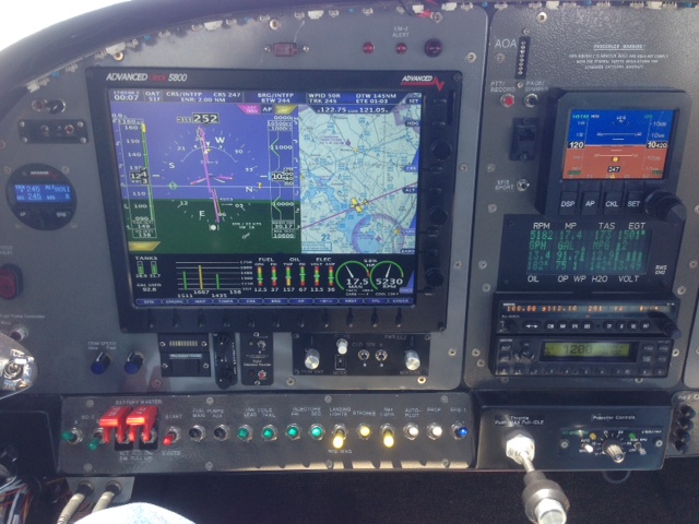 Here's a picture of the panel in my Lancair ES. The panel was recently upgraded to the new Advanced Flight Systems EFIS. The little EFIS is an old Blue Mountain unit, used as a backup. Picture was taken on my return flight from this year's Alternative Engine Fly-in.