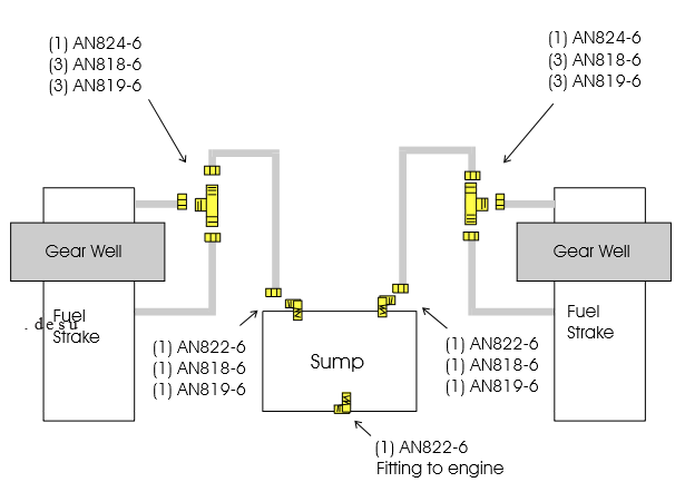 Interesting. At least the Velocity is more of a 'shoulder wing' configuration, with a bit more head between the bottom of the tanks and the engine's fuel inlet, right? I suppose that with adequate sump size, fuel would always flow into the sump. I flew a BD-4 (high wing) for a while; its stock system looked very similar to that drawing, with each pair of dual pickups T-d into a fuel selector where the sump is shown in your drawing. There were numerous fuel starvation incidents when there was fuel in both wing tanks. The most popular fix was a sump in the baggage compartment for each wing tank, with a vent from the sump back into the top of its wing tank. It still had a fuel selector after the sumps, so you could keep the fuel load balanced between the wings.