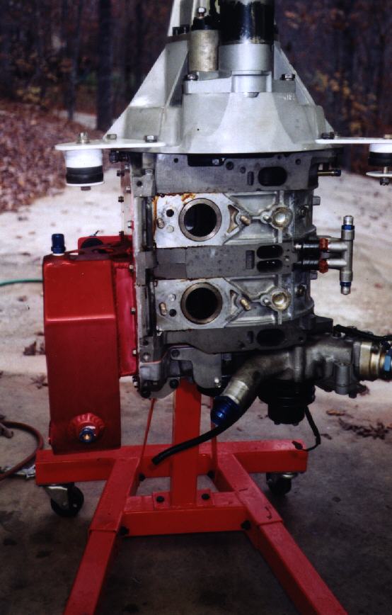 access the bolts in the area of the sump, I stood the 4”x 4” tubing I used for