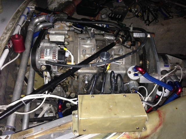 In Glasair there is very little room above engine so thermostat housing and alternator needed to be dropped.
