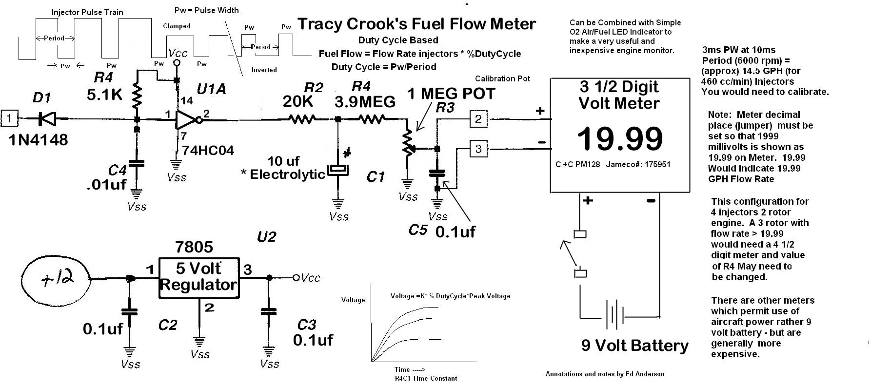 If not interested in fuel total then attached here is my revised drawing of Tracy's Fuel Flow meter that when calibrated is surprisingly accurate.