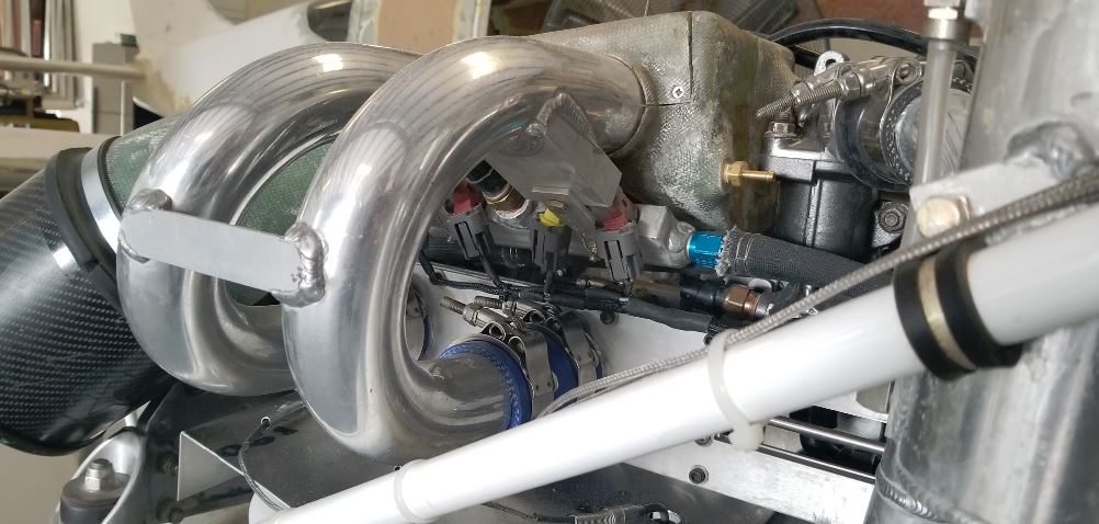 Throttle is the slide throttle Paul Lamar offers. I did have to machine down the 'slide' to true up the flatness to help slide better. I also drilled small holes at the bottom to stop fuel from puddling up during idle. I think the real benefit of the smooth idling is being able to stage my injectors. Using the smaller 'reds' for idle/taxi, and then applying the modified 'yellows' for cruise/power. The megasquirt is amazing for what it can do.