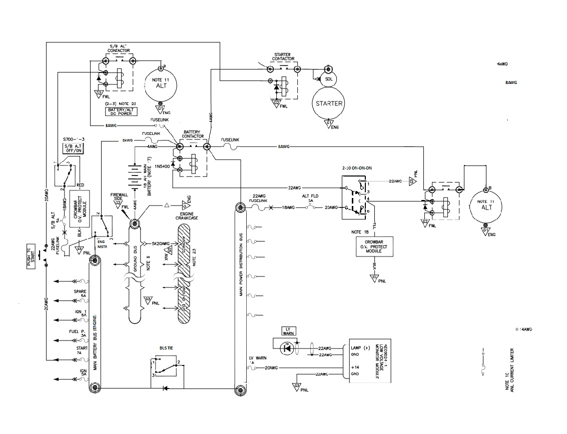 Here's my (current (pardon the pun)) choice. Still undecided about the diode across the buss tie switch; passive vs active backup. Not everything is there yet.Still need a method to detect individual alternator loss (will likely require Schottky diodes in each alternator line). Goal is to have an engine buss controlled by a physical switch (high current, obviously), with *backup* power flowing through the master contactor and main buss. Attempt is to replicate, as closely as is reasonably possible, typical operation of a traditional a/c with traditional engine. One switch controls the airframe; a separate switch controls the engine. That way, decades of training for 'smoke in the cockpit' or other electrical problem won't inadvertently kill the engine.