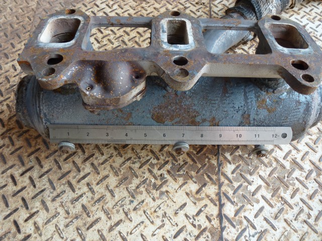 Photo of modified straight through muffler to attach directly to the RX8 engine. The science apparently is to have approx 1/8" holes that amount to 28% of the area of the through pipe. This one is 3 inch but the Manufacturer claims that 2.5" is better. Dia is 5 " and the space between is packed with fine S/S "wool". THis is the first bloke that can tell me the science in mufflers as he has made them all his working life.