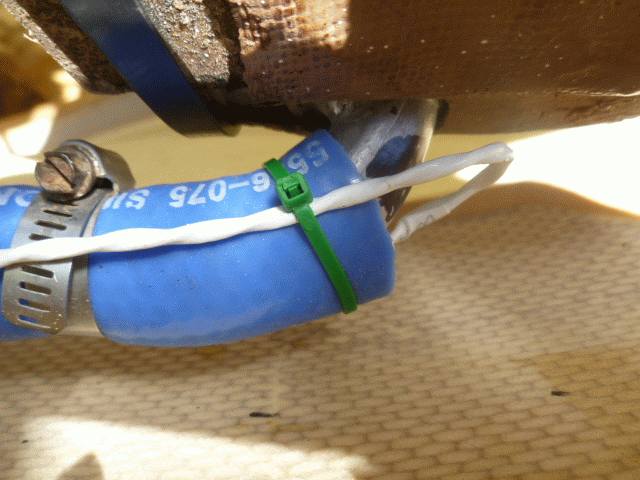 The left sensor contacting the 3/4" tubing going into the return (was planning on moving it to left rad output tubing).