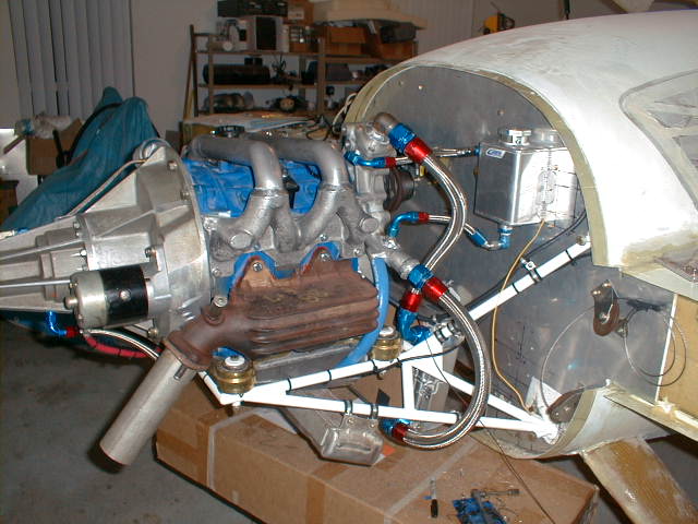 Attached is a pic of Paul's installation. It sounded almost like a small block V8; very pleasing. And the total weight (~15 lbs) probably isn't any worse than most of the custom stuff we come up with today.