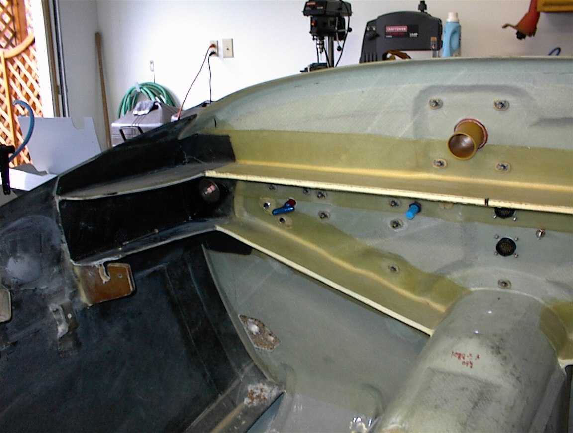Per the IVP instructions, you remove the aft laminate (about a 2"x 2" area) and the nomex core material and then put a two or three bid reinforcement in place. You now have a nice hard point to drill through that is not too thick for your AN fitting. Picture attached.