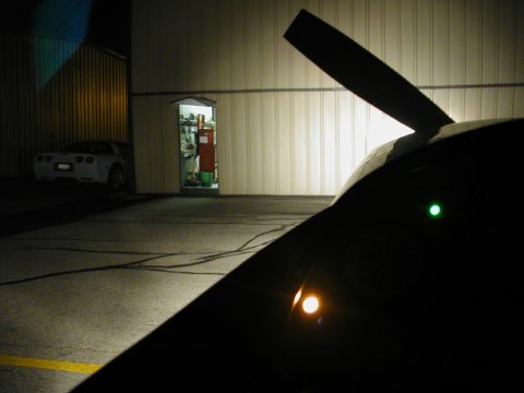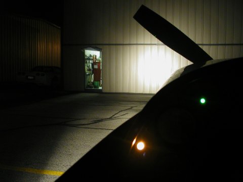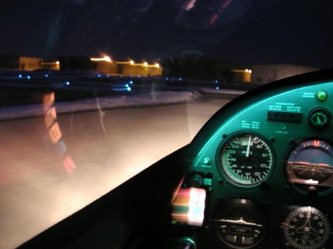 whilst on a snow bordered taxiway and the light on the hangar way off in the