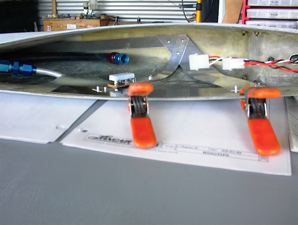 Install the antenna (Bob Archer) per the photo. Drill a few holes for the wingtip screws though the antenna and line it up.