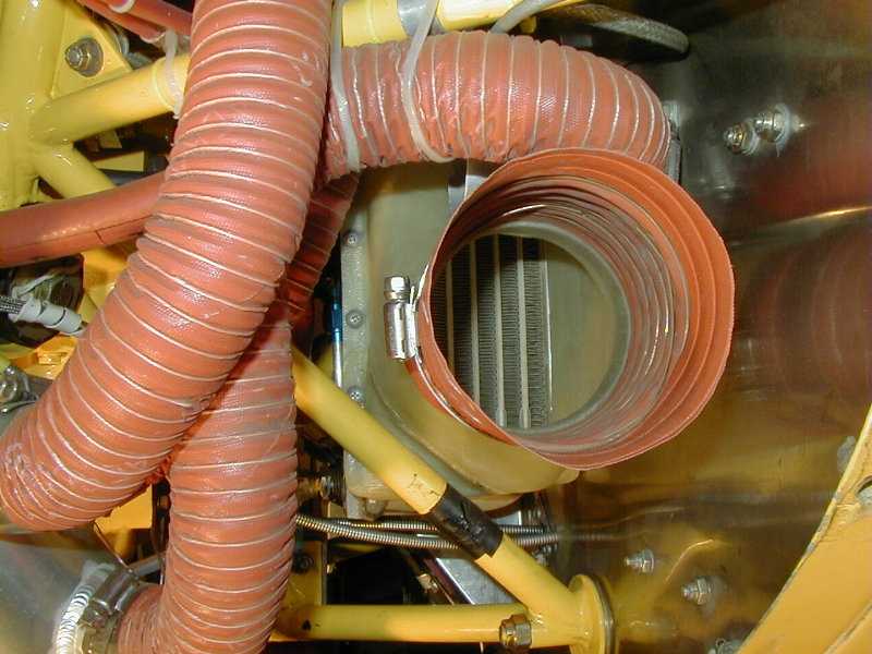 lower cowl, turns parallel to the firewall and flows through the cooler,