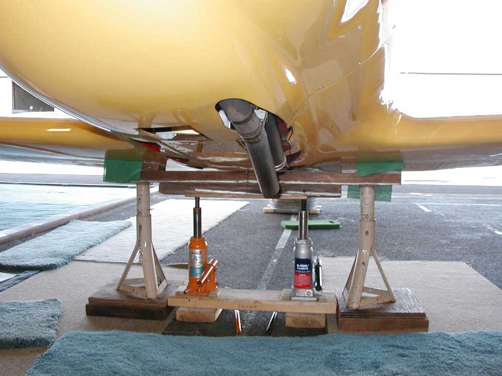 under the wing spar.  The wedge-shaped pieces under the green rubber pads