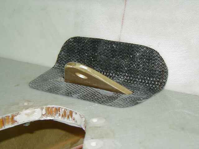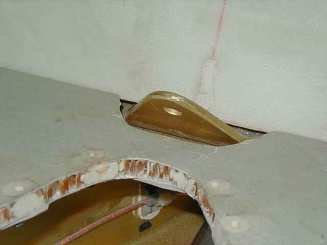 [I'm sure there are dozens of ways to skin this particular cat, however, this is what we did on Ted Noel's IVP. Apply release tape to an area alongside the seat belt bracket, lapping the tape up the lower pressure bulkhead about 2 inches and forward on the seat panel far enough to encompass the clearance opening in front of the bracket. Then do a 2-BID CF layup onto the release tape, making the layup about 2 inches longer than the seat belt bracket. After it's cured you cut it to a pleasing shape and notch it for the seat belt bracket. After everything is assembled you put a bead of silicone sealant around the bottom and back perimeter of the CF part, slide the selt belt bracket through the notch and let the silicone glue it in place. Run another bead of silicone around the notch for the seat belt bracket and you've sealed the area. I've included a couple photos, as per your request. I hope this helps. <Marv> ]