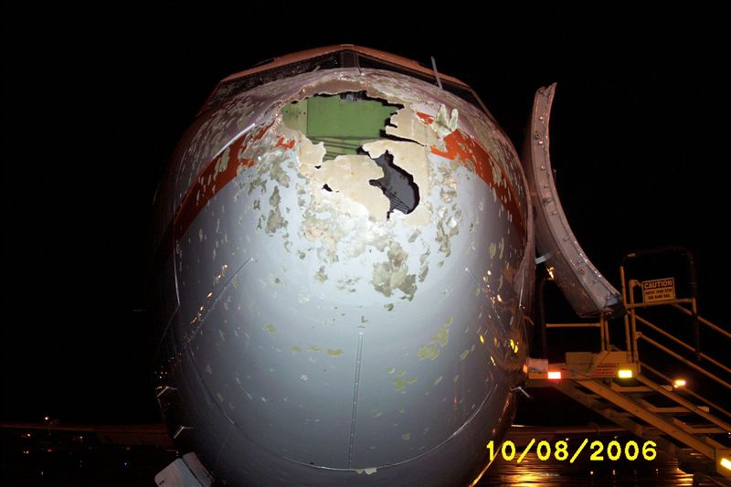 of the damage. All landing lights were destroyed, as was the radar. The
