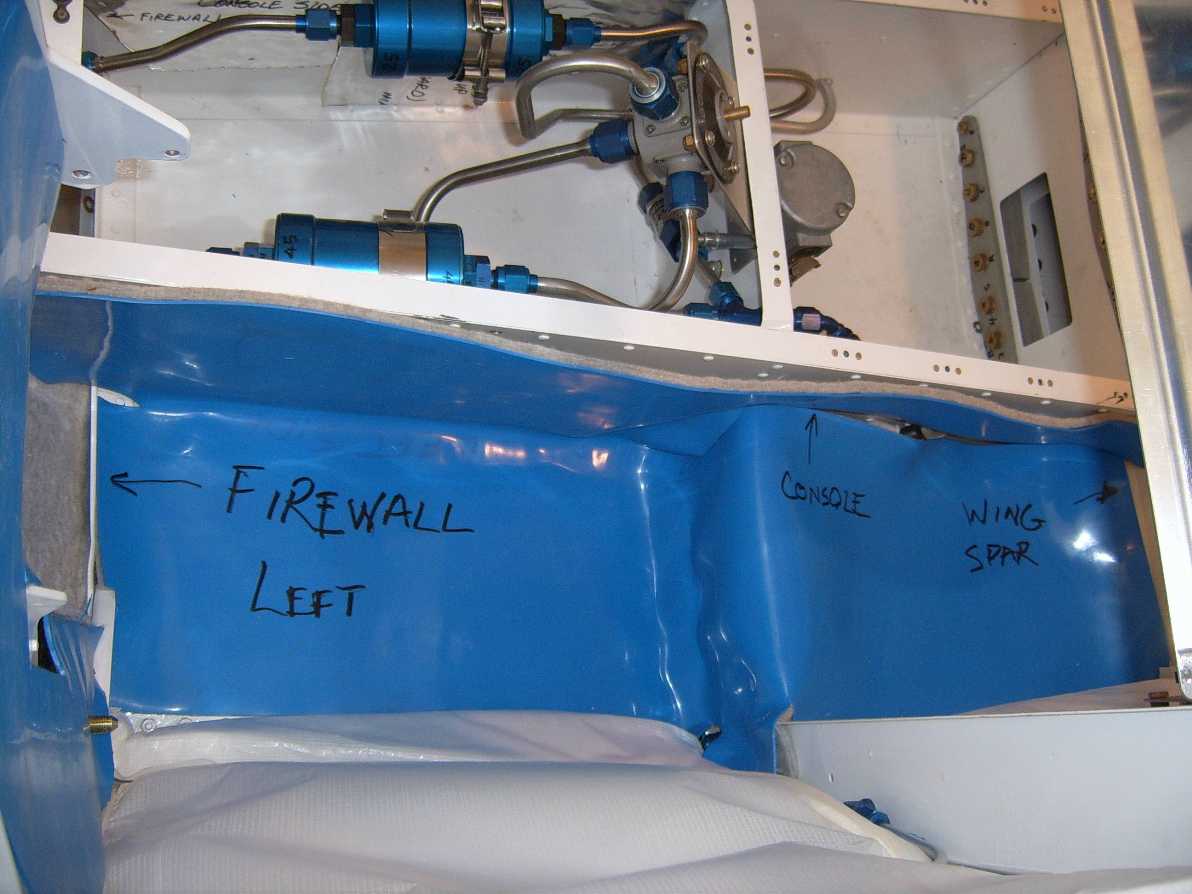 is bonded to 50 - 75% of the firewall and inside the nose wheel well (watch