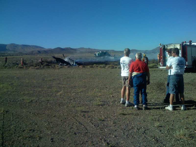 We need to think about high speed aborts in our Lancairs. Bucky Whittier LNC2 _____ Guys- This was the only picture I thought to take. long after things were well in hand with the fire crews. I'd never met John until today- he seemed pretty banged up but refused medical care. He thought the right brake ignited the sage brush when he came to a stop. Lousy way to lose an airplane...