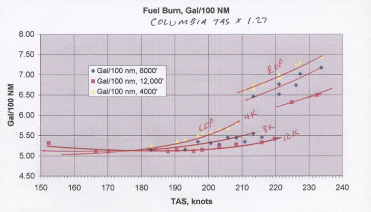 tables and then curves for gallons/100 nautical miles as a measure of fuel