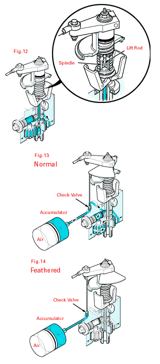 (Fig. 13) When the propeller is feathered, the check valve maintains