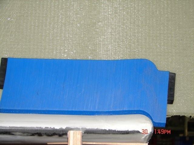 This picture shows the end of the LH elevator- it's sanded down to the skin but has a pronounced upsweep, about 1/4" at the highest point. The RH is very similar. Lancair told me this is intended to act as an air dam to keep air from spilling off the end, however they also said it could be flattened out if I wanted. Since the stablilizer tips are flat it takes a fair amount of micro to match the profile.