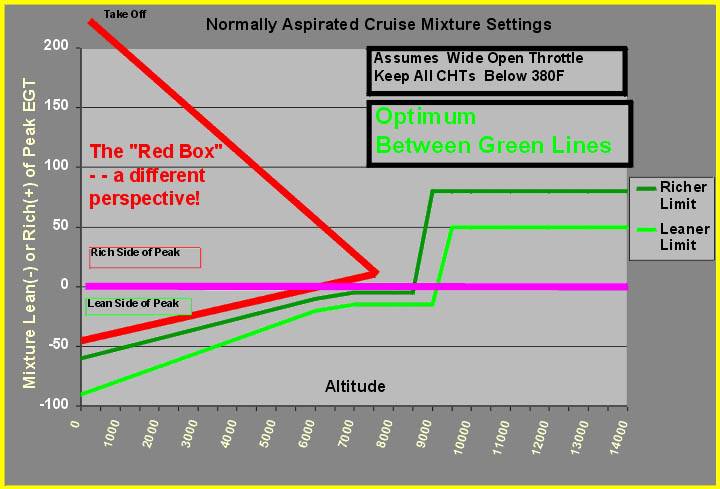 speed compared to the pure economy case (50F lean of peak) so for best combination of speed and economy, run between the green lines. (Being
