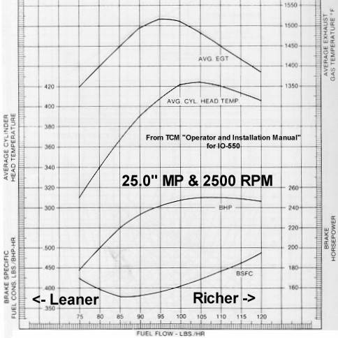 120 PPH (rich). Note the CHT peaks at a substantially richer mixture than EGT.