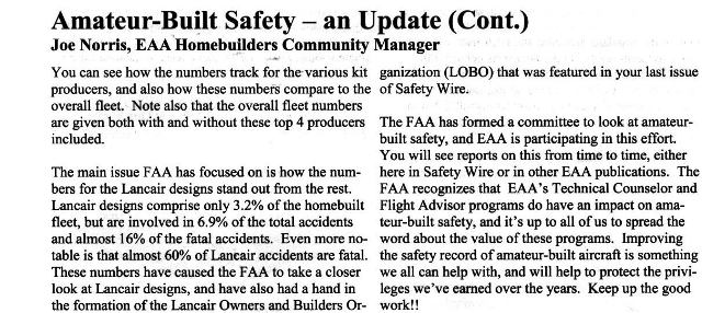 Attached is an article from the current issue of "Safety Wire", Volume 3